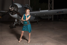 The lighting used for the photo shoot was designed to replicate a set from Hollywood photos in the 1940's with vintage war airplanes. Two sets were available for photography with six models from Arizona. The first set was indoors in a hangar with four lights surrounding the model. The second set was outdoors with different lighting for a slightly different effect. Both sets were ideal to create beautiful images.
